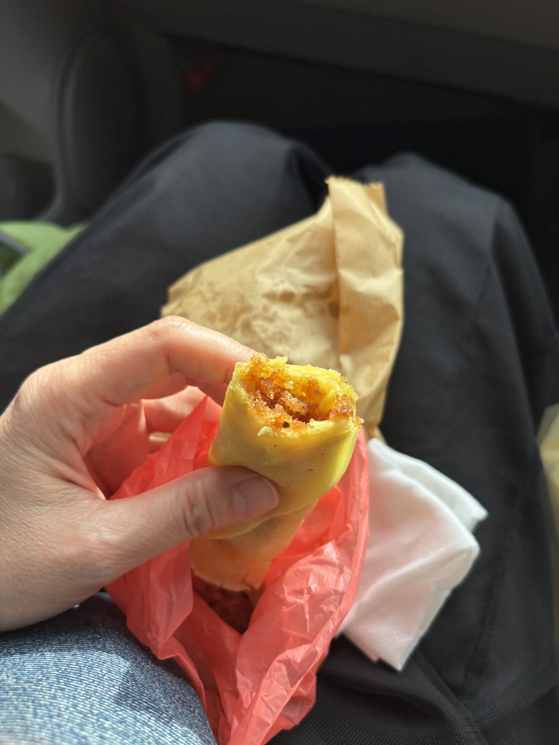 翌日は、距離が長かったため、ランチをスキップすることとなり、小腹が減ったためローカルなお店で軽食を買ってくれました。